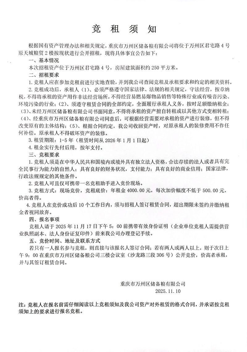 - 万州区储备粮有限公司原天城粮贸仓房招租