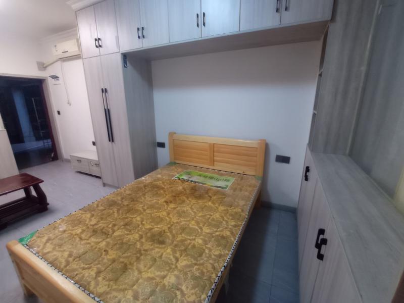 基本配备齐全:床、柜、桌椅、照明、插座、空调,洗衣机、灶台均已就位,满足日常生活需求。