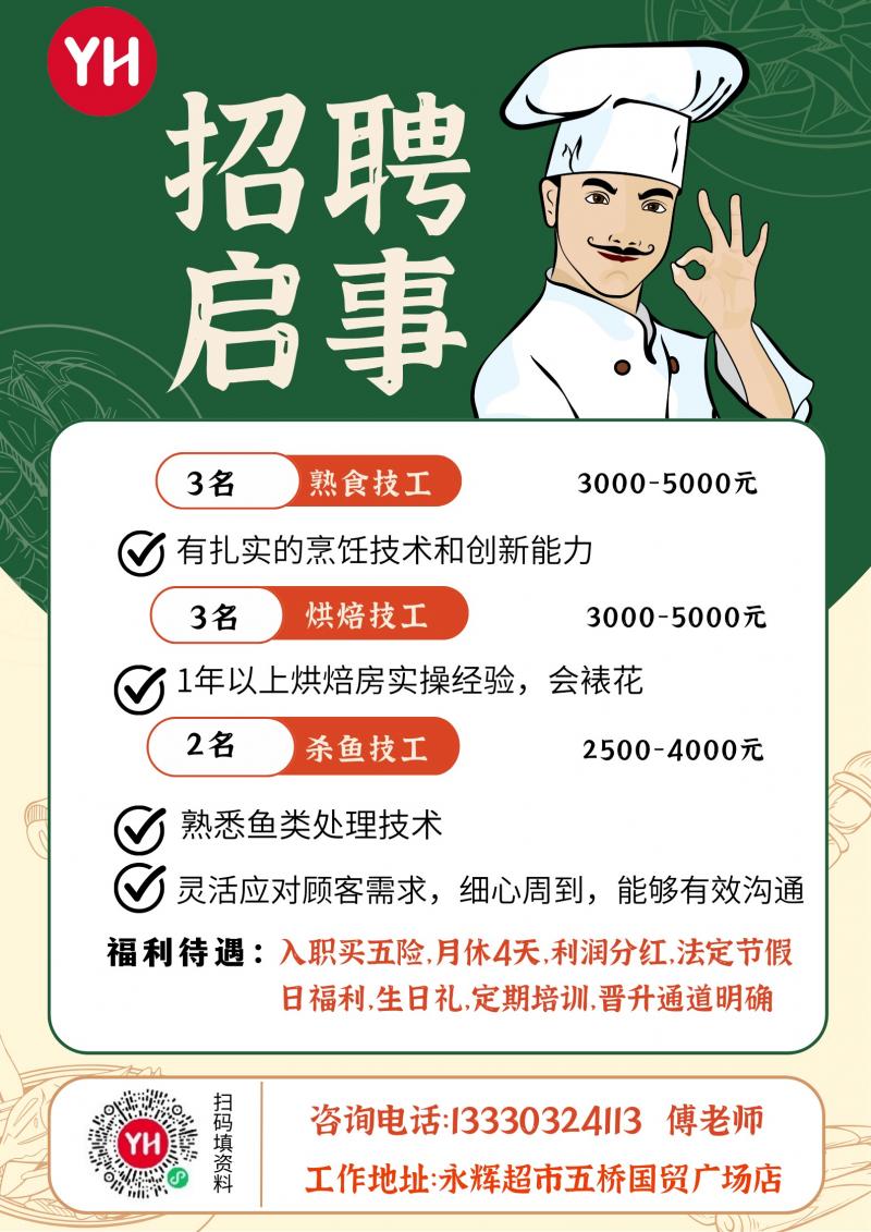 熟食、烘焙、杀鱼技工来电话时请说是在万州生活网www.cqwanzhou.net看到的!