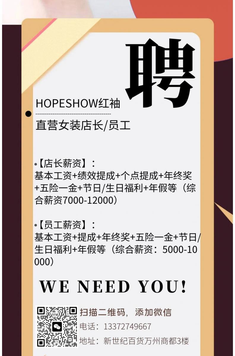- 红袖*装急聘店长/员工