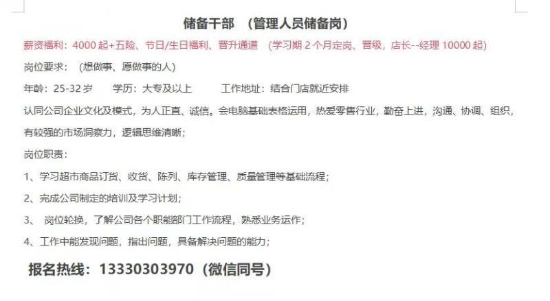 家益超市创立于2002年目前60+门店员工近1000人,年销售7亿左右,持续不断拓展新店稳健发展,马上高峰产业园食品加工厂,所以人才需求很大。