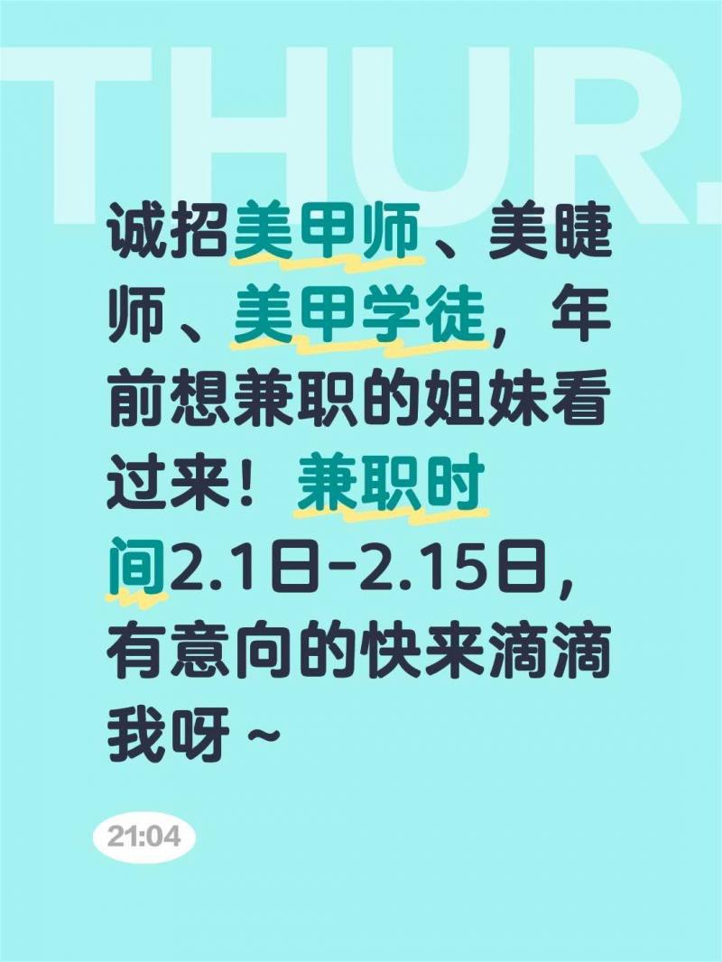 招聘职位:临时工(会美甲美睫优先)