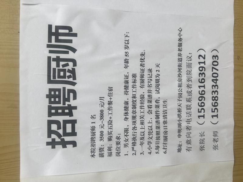 - 沙河街道养老服务中心急招厨师